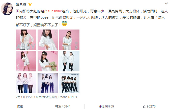 这架势,吓得另一个名为Sunshine女团当天就改了名。