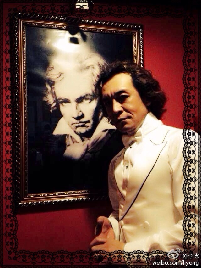 新浪娱乐讯 5日晚,李咏主持传媒大学新年音乐会,妻子哈文带着11岁的女儿法图麦盛装出席,母女似姐妹花。李咏则跟墙上的贝多芬肖像合影,意外撞脸。