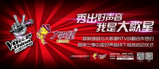近日,梦响强音文化传播(上海)有限公司和万达集团旗下北京大歌星投资有限公司在上海举行新闻发布会,宣布双方达成战略合作,《中国好声音》节目组授权“大歌星KTV”成为第三季节目线下娱乐行业海选招募的唯一报名通道,并由此正式启动《中国好声音》第三季海选活动。《中国好声音》栏目组表示,针对最近全国各地发生多起假冒《中国好声音》海选事件,为了确保《中国好声音》节目的质量,确保海内外有更多的唱歌爱好者能够参加《中国好声音》节目海选,这次栏目组独家授权国内KTV行业的航母级领军品牌——万达集团旗下的“大歌星KTV”,成为第三季《中国好声音》线下海选报名点,选手可在自己所在城市或附近城市的“大歌星KTV”门店领取报名表,填写相关资料,并录制参赛歌曲;选手参赛作品通过“大歌星”手机客户端上传后,由网友评选,并排定门店榜单;这次线下海选活动共分成三个阶段,即“大歌星KTV”全国门店招募比赛、城市海选决赛、7大区总决赛。届时,《中国好声音》栏目组导演及前两届的学员将亲临海选现场,共同感受各地选手的“声音魅力”。