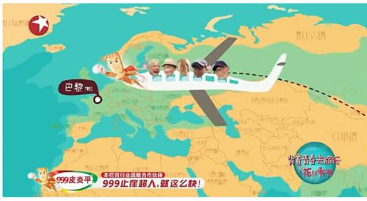 节目播出的同时,或许已经有细心的观众发现了。我们经常能在画面中看见一个“小超人”似的卡通形象领着飞机和火车在地图上飞来飞去,而这个“小超人”到底是什么来头呢?原来,它就是节目中被称为“隐形挑夫”的999皮炎平“止痒超人”。在《花样爷爷》的第一集中,它不仅化身“贴心小药箱”为爷爷们的健康保驾护航,还身兼数职,担任起爷爷们旅行中的“飞机驾驶员”、“火车司机”……全程以满分状态完成自己的使命。