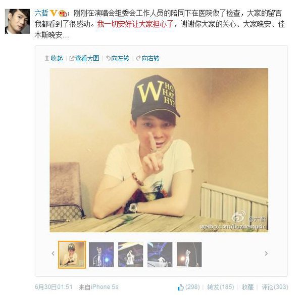 近年来歌手被舞台“陷害”的情况时有发生,歌手在上舞台正式开唱前都有正式彩排,但唱到兴起难免会有不小心,在户外举行的演唱会因为会受到天气影响,在舞台上滑倒也是常事。最遗憾的是21年前从舞台上跌落的黄家驹,一代神话辞世,但留给大众诸多经典,令人永远怀念。数年前从舞台摔伤双腿的杨坤,一时无法重现“踩烟头”形象,但通过《中国好声音》获得演艺生涯新高并获以“32郎”之称,也算是因祸得福。据悉这次在佳木斯演唱会由于舞台舞美安装的问题,六哲在与观众互动的时候不慎从舞台台口处跌入台下,顿时数名安保人员迅速赶到其跌倒位置,六哲由于平时酷爱害游泳等健身运动身体素质很好起身回到舞台并演唱完所有的曲目,好在没有受到严重的摔伤,演唱会结束后立即赶到医院检查,所幸没有大碍,让现场数万名观众和媒体及组委会人员捏了一把汗。当晚群星演唱会,云集乐坛人气歌手,张靓颖、周华健等众艺人也在后台对六哲致以关心慰问。对于本次受伤,六哲自信的称“越挫越勇”,并发布微博向粉丝报平安。经纪人宋旭表示接下来会更加慎重确保巡演安全。