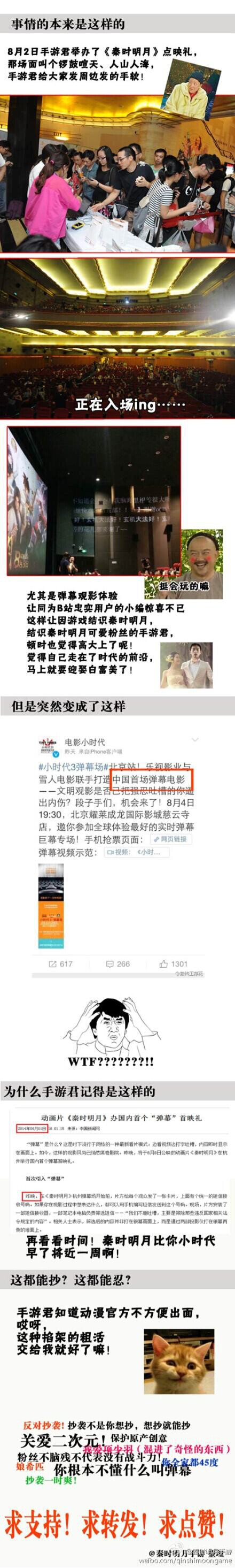 其实冷静分析,上述借口不仅完全无法解释《小时代》“冒领”首创者头衔的行为,更无助与消弭争端。以技术层面为例,一位自称为二次元迷的网友称《小时代》的弹幕技术是与B站合作,而《秦时明月之龙腾万里》则是自行研发,技术含量低,所以不配被称为弹幕电影。的确,B站是受众广泛的弹幕视频网站,但在弹幕电影的技术上,却缺乏权威性,而秦时明月从技术到设备软件都是自行研发,怎么就能看出技术含量低?8月2日触控、玄机和光线共同举办《秦时明月》手游大电影版本发布会,会上再次进行了弹幕播放,影迷通过短信平台,可以在30秒内将自己的评论发送到银幕上,实时性很强。