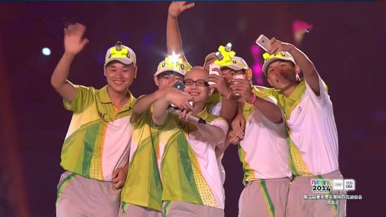 8月28日晚,万众瞩目的南京青奥会落下了帷幕,平安压轴献唱一曲《中国名片》,向世界展示了来自中国的声音。全场5万名观众调亮手机屏幕来回挥舞,以此代替荧光棒为平安喝彩。值得一提的是,现场有500位志愿者标兵为平安担任“助演”,平安也和他们一样身着“小青柠”服装,终于如先前所愿成了一名“小青柠”。继前日下午在青奥村门口与志愿者自拍之后,平安昨晚在闭幕式舞台上也如法炮制,以这种特殊的方式向志愿者致敬,这一大胆举动掀起了现场的一个小高潮。