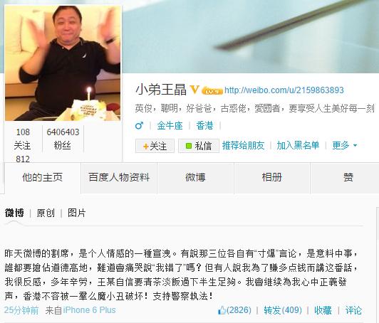 王晶微博截图