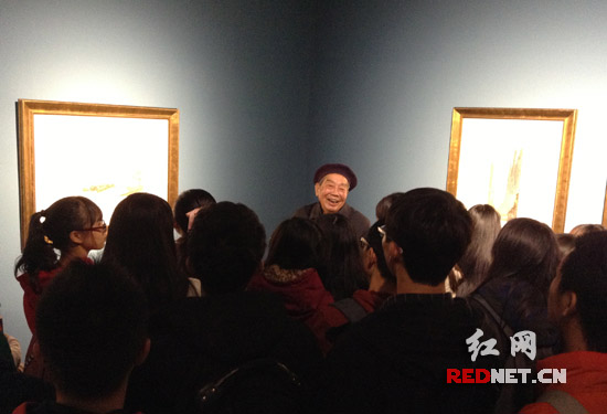 红网长沙11月29日讯(记者 朱青)由湖南广播电视台等单位主办的“百川为海绝顶为峰——殷保康水彩艺术60年回顾展”在谭国斌当代艺术博物馆向市民免费展出。11月29日,主办方在展会现场举行“与艺术家对话之博物馆里的水彩课”公共教育活动,湖南卫视主持人李兵担任主持,殷保康现场为参观者担任导展,中南大学建筑与艺术学院美术系主任、教授蒋烨现场为大家讲授水彩画基础知识与当代水彩艺术理念。