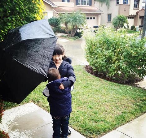 1月3日,田亮在微博晒出一组女儿森蝶在美国的生活照。照片中,森蝶打着一把黑色的大雨伞,在雨中抱紧弟弟。田亮欣慰的写道:“姐姐在身边,雨下再大也不怕,有一种感情,叫风雨同舟。”