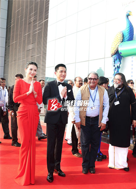 2014年11月的印度国际电影节上,章子怡一袭红色礼服亮相,气质十分出挑,完美无瑕的女神形象成吸睛焦点。她和梁朝伟代表中国电影为开幕进行隆重的点灯仪式,二人受到媒体和观众热情欢迎,并双手合十行印度礼仪。