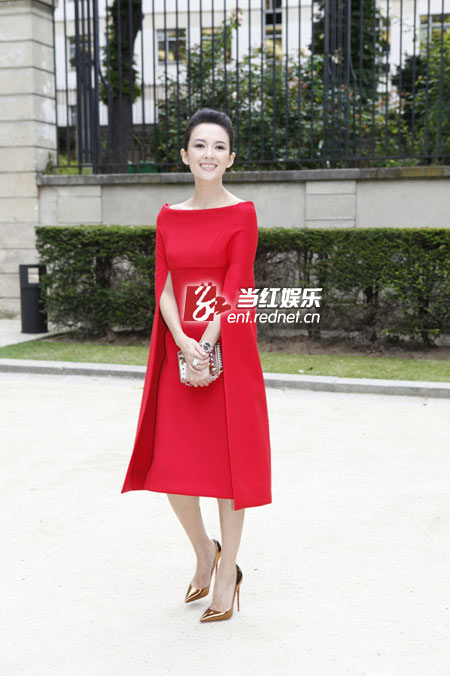 当地时间2013年7月3日巴黎高定时装周期间,章子怡一袭红色斗篷裙惊艳全场。当日,章子怡受邀观看Valentino2013秋冬高级定制女装大秀,品牌创始人Valentino先生和设计师MariaGraziaChiuri和PierPaoloPiccioli对章子怡的到来表示感谢。