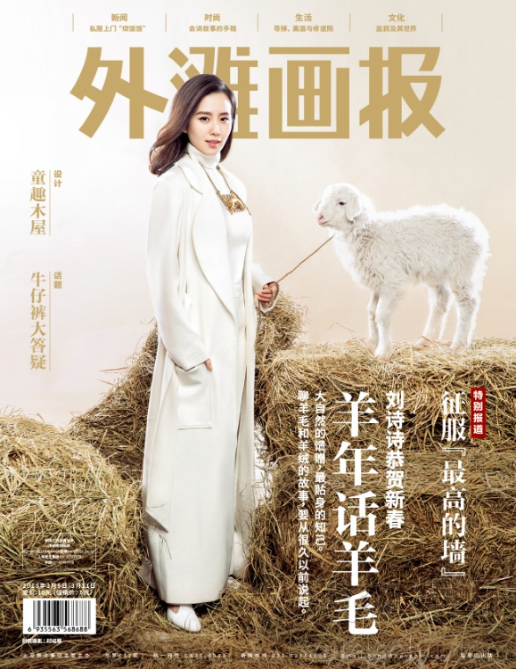 羊年伊始,刘诗诗为《外滩画报》拍摄封面大片,身着一身白色羊绒大衣的刘诗诗牵着一只可爱小羊羔出镜,拍摄期间刘诗诗不时怀抱小羊亲昵互动,笑容温暖贺新春。