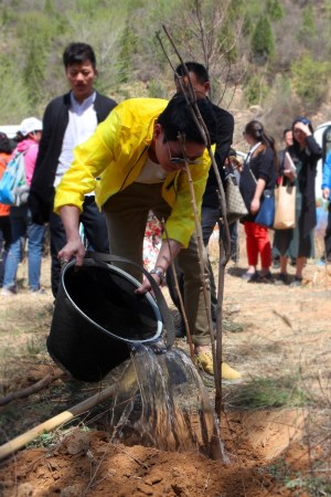 身为华语乐坛当红唱作歌手,陈楚生的演唱实力与音乐才华备受大众肯定,工作上的积累和沉淀让陈楚生越发感受到对社会肩负的责任感。一直亲力亲为参与环保事业的陈楚生,在获得北京晚报邀请后便义不容辞地给予应许,力求将自己的环保理念与更多的朋友们分享。活动现场,当陈楚生被问到平时有何环保小绝招时,陈楚生坦言平时出差会带上自己的洗漱用品,尽量不使用酒店提供的一次性用品,号召大家从点滴小事做起,每人改变一点点,环境就会前进一大步。随后,陈楚生与读者们前往植树区,带领大家种下一棵棵希望之树。