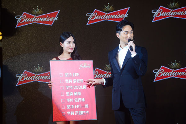 在1876派对中,百威特别为这位“坚持男神”准备了一道有趣的选择题——在“坚持自拍”、“坚持爱老婆”、“坚持童颜”、“坚持Cool魔”、“坚持日行一善”、“坚持不拍烂片”和“坚持做男神”7个坚持里最想要坚持什么?张智霖不假思索脱口而出:“坚持爱老婆”。当主持人问及坚持的期限,张智霖更表示希望坚持爱老婆100年。张智霖和老婆袁咏仪的爱情也被大家称之为“坚持典范”。在主持人的一番追问之后,张智霖表示也将继续坚持慈善和不拍烂片,做一个对观众负责的好演员和对社会负责的好公民。他还提到自己在今年想要坚持的事情是运动和每天跑步,从而更好地投入工作、照顾家庭。