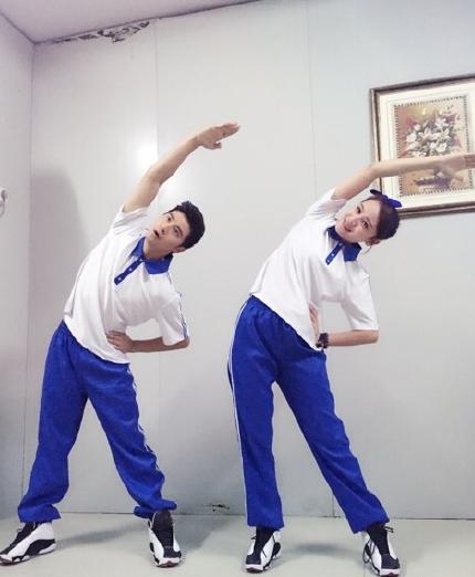 5月13日晚间,田亮晒出一组照片,他与妻子叶一茜夫妇重穿校服做广播体操。田亮留言称“来来来学长教你做广播体操,第一节伸展运动,预备起!这位学妹……你先下来好嘛,好重的”。