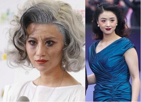 左:尚雯婕老人妆 右:蒋欣僵尸妆