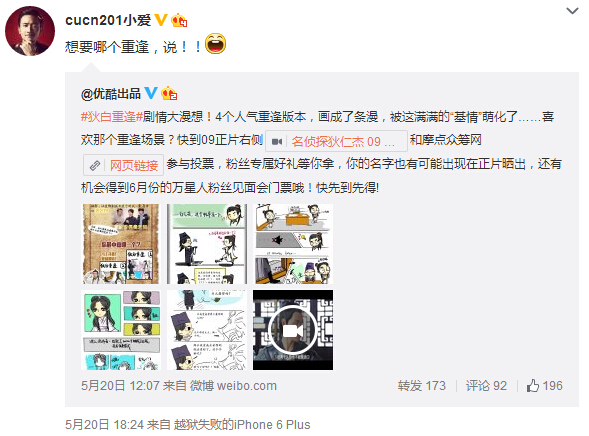 目前剧情众筹的活动仍在进行,其中“翻白眼破解诅咒”的支线剧情暂居第一,最终结果将在本周众筹项目结束时正式揭晓。而最终拍摄的成片将在《名侦探狄仁杰》第11集中播出。
