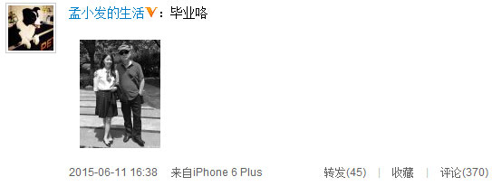 6月11日,孟非通过微博发出了自己和女儿小苹果的合照,并称女儿毕业啦!照片中女儿身穿校服,甜美的笑容格外抢镜,颇有韩国女星风范。而孟非则略显发福,大墨镜遮掩之下的他显得有些稍微严肃,和女儿的风格大相径庭,不过那半只翘起的脚掌却露出孟非无比轻松愉悦的心情。