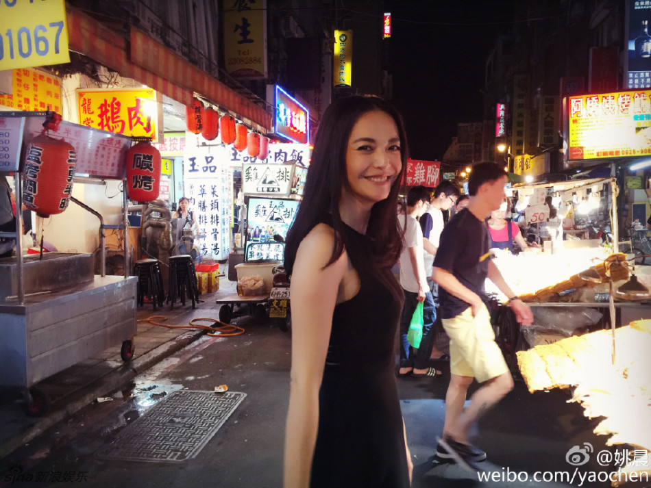 7月19日凌晨,姚晨在微博上晒出了自己逛台北夜市的照片,并附文称:“老余,你在哪儿?翠萍已到台湾。@孙红雷”