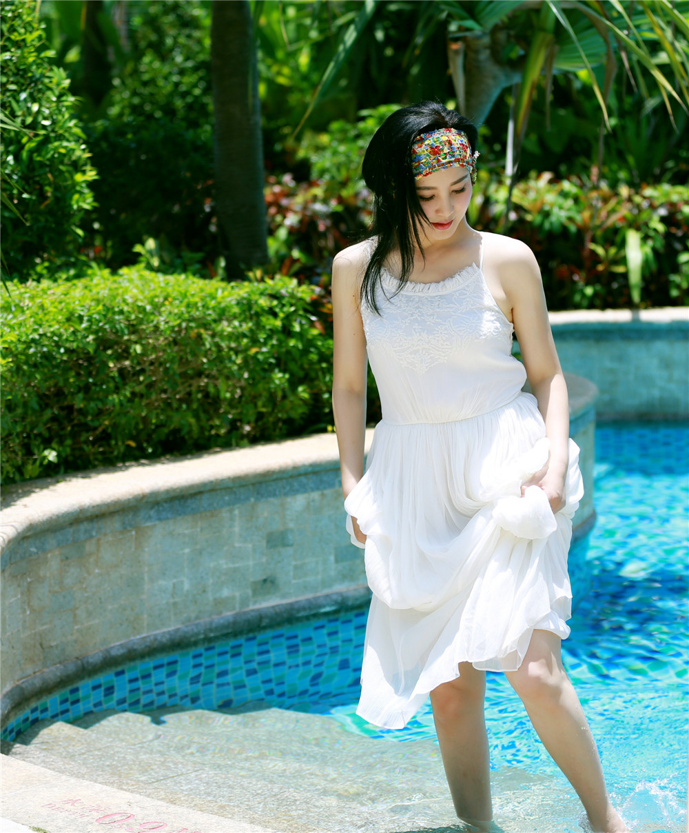 日前曝光了一组大陶红私人度假写真照,在炎热的三伏天,去海边度假是最好不过的选择,穿着白色沙滩裙的大陶红头系彩色发带,展现热带风情,时而下泳池戏水时而在花园翩翩起舞,女神范儿十足。