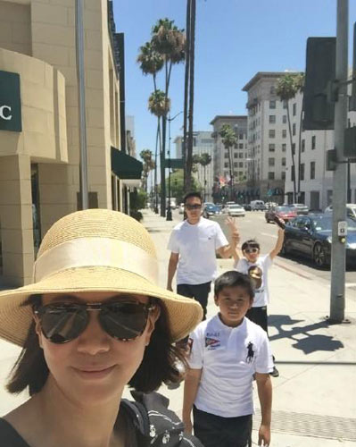 袁咏仪一家三口美国行 张智霖父子颜值抢镜
