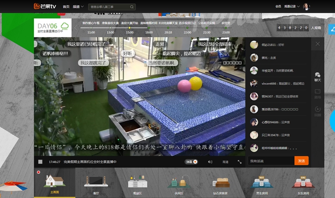 再来看到《完美假期》。作为纯网生内容,《完美假期》在芒果TV全平台(PC端、APP端、移动WAP端、互联网电视、IPTV)播放。节目中设置有互动环节“818聊天室”,可支持超过200万人同时在线双向互动,创新引进的全影像立体虚拟主持——女神嘻芮等,加上弹幕、投票等众多元素,互联网特征明显,完全符合平台目标受众的收看习惯。