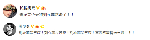 不过更多网友关心的是,刘亦菲的正牌男友宋承宪居然在生日当天没有什么表示。而昨晚,爆料人长腿胡乓更是爆出:“宋承宪今天和刘亦菲求婚了”,引来网友纷纷围观。随后,又有爆料人“圈少爷”在微博表示:“刘亦菲并未答应”,网友更是炸开了锅。有记者致电刘亦菲经纪人陈先生,被问及刘亦菲求婚事宜后,他支支吾吾最后来了一句:“你找错人了”。