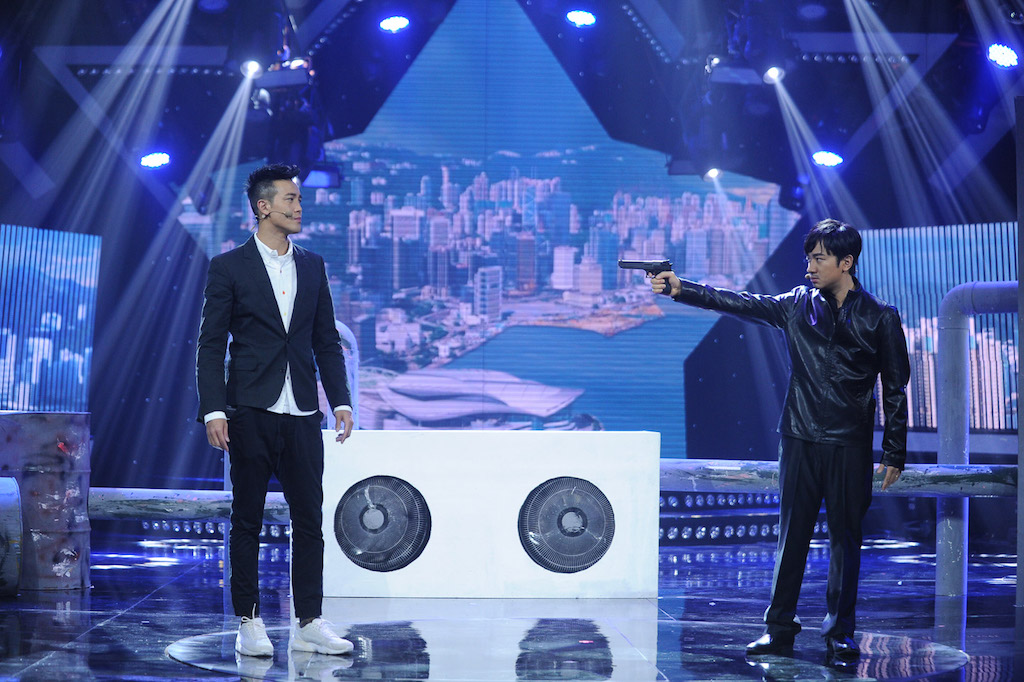 本期节目中,曾国祥也请到了一位重量级嘉宾——凭借《奔跑吧兄弟》爆红的著名演员王祖蓝现身为自己助阵。作为曾志伟亲传弟子,王祖蓝与曾国祥很早之前就彼此熟识,王祖蓝更在现场亲密地表示:“我们俩可以说是兄弟。”第一季《我不是明星》中,王祖蓝就曾为胡瓜之女胡小祯助阵过,这次为了好兄弟,王祖蓝自然更是卖力。节目中,曾国祥与王祖蓝化身《无间道》中的刘德华与梁朝伟,再现了那场经典的“天台对决”。擅长模仿的王祖蓝为了这次的表演还特意将《无间道》三部曲又全看了一遍,在舞台上一眯眼一回眸竟与梁朝伟有八分相似。在表演中,王祖蓝一会变身“忧郁梁朝伟”一会又突然变成“完美金星”,瞬间的模式切换令人捧腹不已。