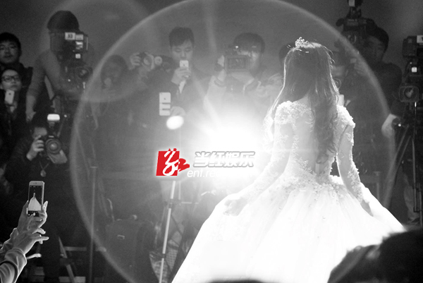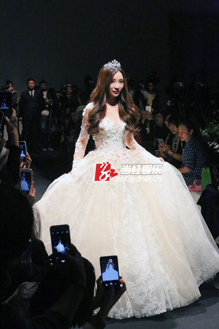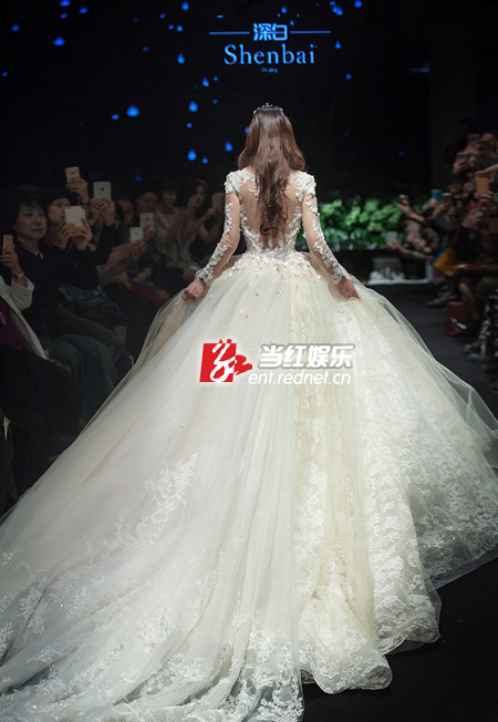 2015年10月30日讯,北京,Shenbai深白2016春夏发布会举行,李艾、钟丽缇、张伦硕、杨恭如等众多艺人到场看秀捧场。本次发布会的最大看点,莫过于“国民女神”柳岩身穿重达50斤的巨型高级定制婚纱压轴走秀,十分惊艳。