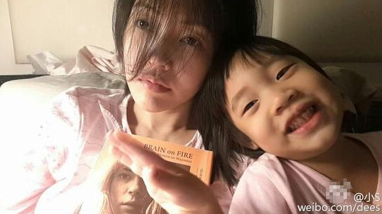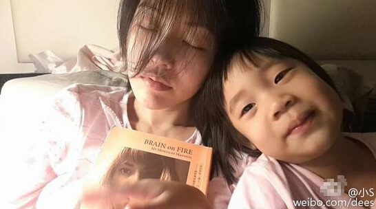 今天(11月9日)晚间,小S在微博中晒出和女儿的合影,照片中,小S身穿粉色睡衣,头发遮面,不是眼神迷离就是闭眼,神情略带无奈,手里拿着一本书,而许老三似乎一刻也不消停,依偎在妈妈的肩上,搞怪卖萌,两人的精神状态截然相反。小S无奈的称:“我真的想好好的看本书,但许老三一致纠缠我!”