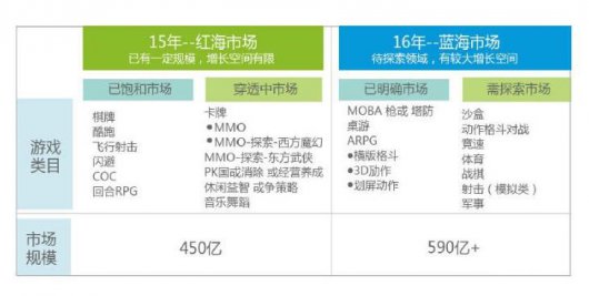 时至2015年,如今的手游行业早已远非2014年那么简单,据最新的腾讯《2015互联网+白皮书》统计,2015年移动游戏行业收入规模持续稳定增长,前两季度收入超过230亿元,预计15年全年收入达450亿元。截止15年Q2季度,手游CP规模达2.77万家,市场规模在扩大,CP数量顺势增长,日渐激烈的竞争中对产品精品化要求也更高。其中2015年穿透中的市场里包含MMO游戏,MMO西方魔幻类手游正是主力之一。而在2016年的已确立的市场中,APRG手游尤其是划屏、3D ARPG更加引人注目。