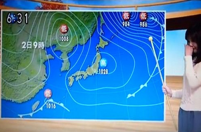 冈田在当地时间下午6时30分起的天气预报时段登场,刚开始很稳定地说:“12月开始,就如这季节的天气,空气有些寒冷,时而有雨。”才过1分钟,播报的声音突然变成哭声,甚至哑然无语。