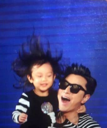 照片中,贾乃亮怀抱女儿甜馨出镜,不知什么原因,甜馨的头发全部竖了起来,造型十分逗趣。