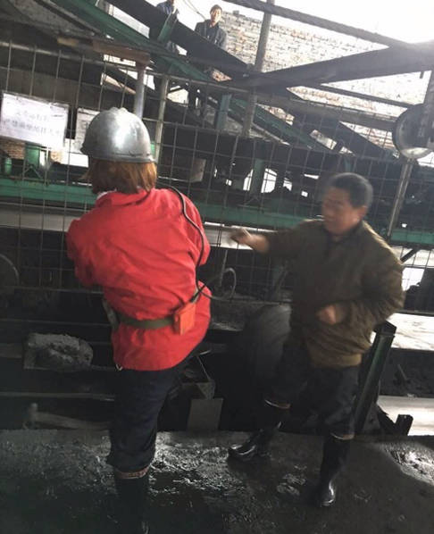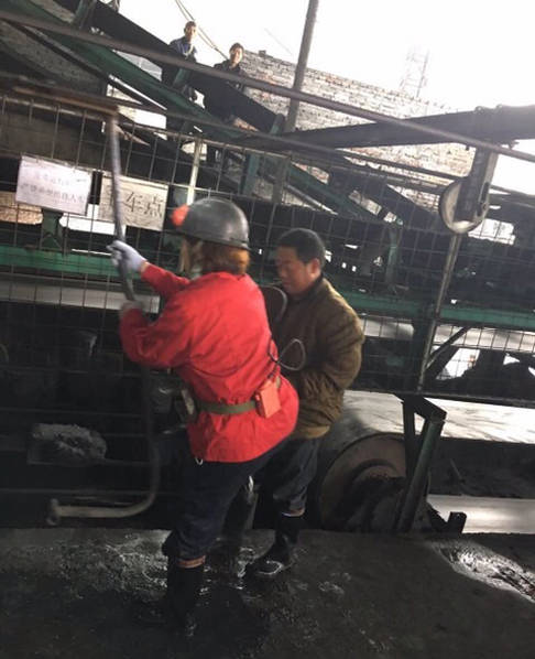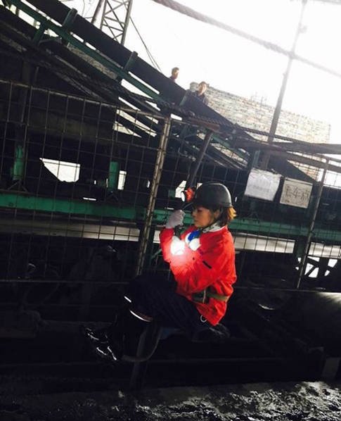 袁立全副武装下矿井。