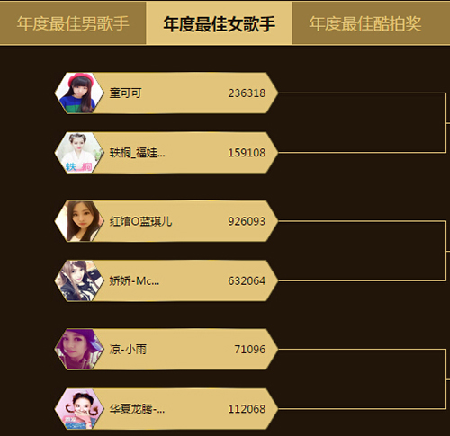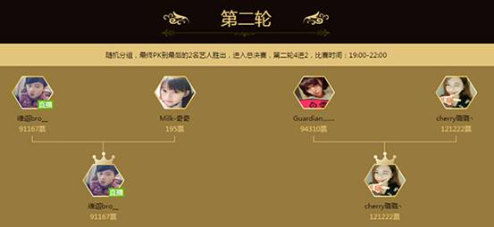 32进8的大奖赛半决赛持续4天,竞争可谓相当激烈。一大早艺人们集体开播,阵容十分强大。14个小时赛程坚持下来,好些艺人甚至连讲话都很困难。但对手的强大和自家粉丝的期望,让他们仍坚持奋战在厮杀一线上。而单项奖半决赛则以年度最佳女歌手的争夺尤为激烈,本来草根主播轶桐一度领先,没想到最后却被拥有庞大粉丝后援团的童可可绝地反超,蓝琪儿甚至于一场就斩获超过92万票!