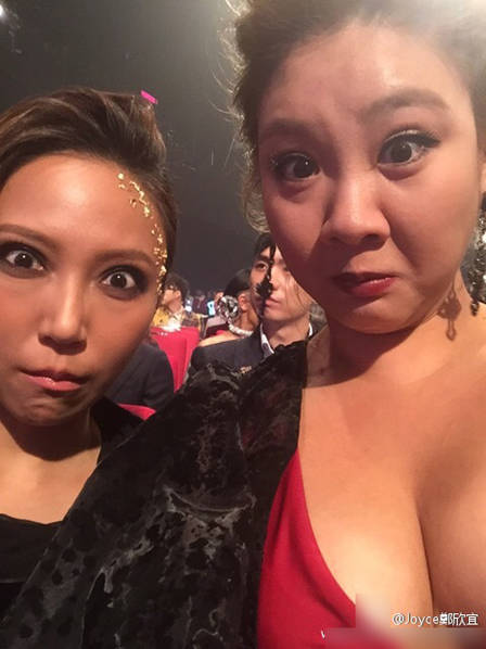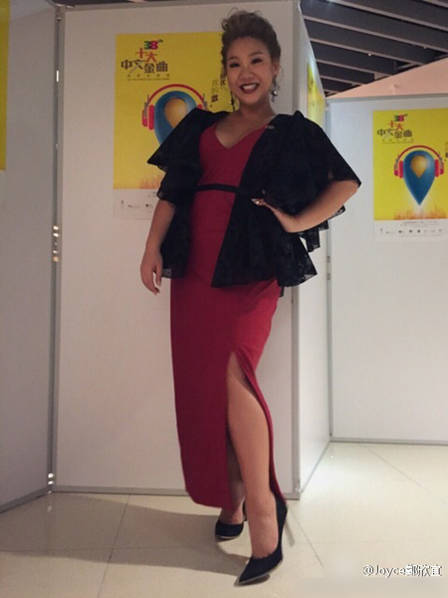 1月6日,香港举行了《十大中文金曲》颁奖典礼,180斤的郑欣宜身着一件红色礼裙,披黑色外套性感出席。7日凌晨,郑欣宜在微博晒出了一组在后台与好友们的合影。郑欣宜更是与好友一起摆出瞪眼嘟嘴的搞笑表情,还秀出了事业线,十分抢镜。