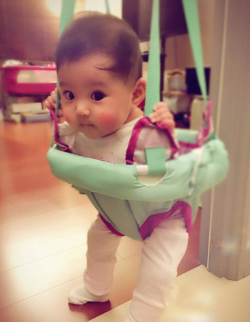 1月7日晚,贾静雯在微博中晒出二女儿小咘咘荡秋千的照片,并写道:“咘咘的Jumper初体验,爱到舍不得离开。”照片中,小咘咘坐在秋千椅上,双手抓住绳子,大眼睛粉嫩皮肤,像洋娃娃一样漂亮。