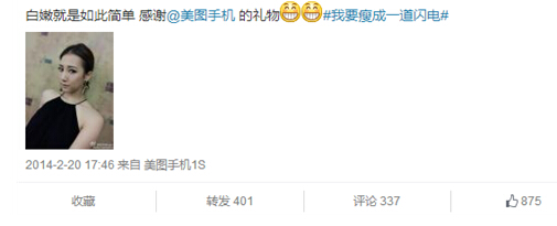 在2013年末的时候,李茂就曾经晒出用“美图1S”自拍的照片,还自曝这是新年礼物,随后不久弦子也晒出用该手机自拍的照片,一样的水嫩一样的自拍角度,真的很巧合。