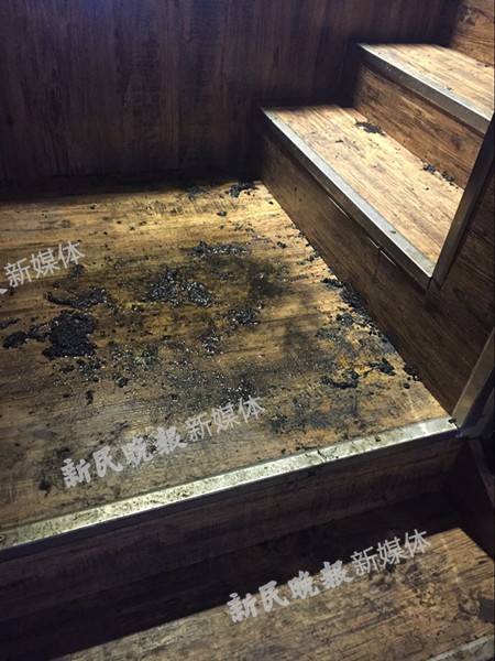 新民晚报新民网记者今天(2日)上午来到位于宝山万达广场金街上的事发咖啡店,咖啡店刚刚开始今天的营业。据店员说,二楼由于“装修问题,很脏乱”,所以暂不对外开放。不过,据记者在现场观察,楼梯上有非常明显的火灾过火痕迹,而二楼就餐区地面上有斑驳的焦痕,纸巾、杯具散落在桌上、地面上。