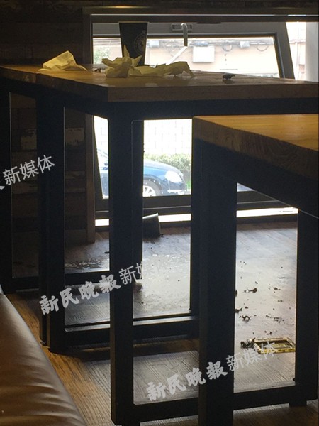 事发咖啡馆地面上还留有过火痕迹