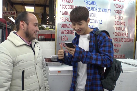 为了打动墨西哥大叔的心,Henry只好发出“爱心”弹幕。面不改色的对着大叔告白“I love you”,真情切意的表情,如果是女生,一定大呼“我愿意!”但Henry现在面对的可是语言不通的外国大叔,只见大叔一脸懵懂的样子,尴尬的接受着Henry伴随着声音的“么么么”疯狂亲吻。眼见大叔不领情,着急的Henry只好使出杀手锏,一边深情对望献唱情歌,一边试图用韩国偶像剧的经典桥段“抚摸脸颊”,来攻下这位扎着辫子的“女主角”墨西哥大叔。