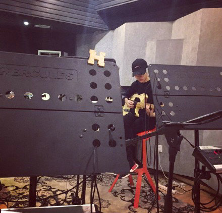 窦靖童坐录音棚