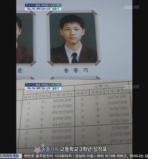 宋仲基因为当兵离开演艺圈2年,近日接拍《太阳的后裔》后,人气瞬间回升,更凭着该剧收获大批少女的心,而他大学时期就读成均馆大学,是韩国当地数一数二的一流学校,高材生的名号为众人所皆知,近日在SBS节目《早安》当中,也公开了他就读大田高中时期的成绩单。