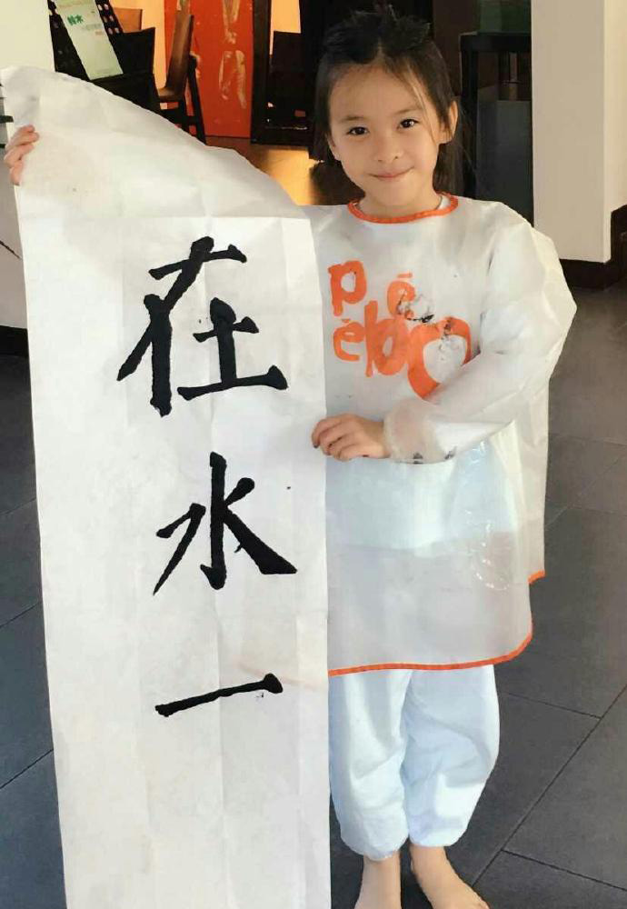 3月27日下午,刘涛在微博中晒出一张女儿拿毛笔字的照片,并写道:“小妞发了张她的字给我,我说怎么没写完啊?她说:请填空。”照片中,刘涛的女儿拿着自己的书法作品“在水一”,微笑面对镜头,好似小版的刘涛,十分可爱。