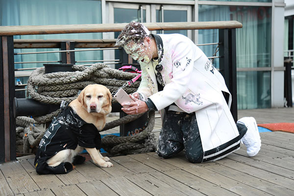 面对彩色大转盘的考验,“小猪”罗志祥到底做错了什么,引来一通奶油喷射,瞬间变身“大白”?