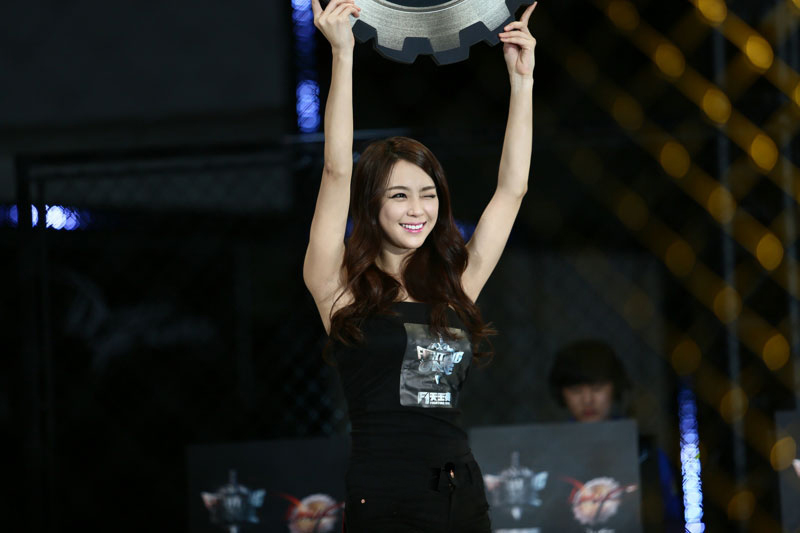 朱多贺曾经多次以Showgirl身份参加韩国最大的游戏展G-Star,并长期担任综合搏击赛事ROAD FC的举牌女郎。图为朱多贺在某格斗游戏比赛中担任“举牌女郎”