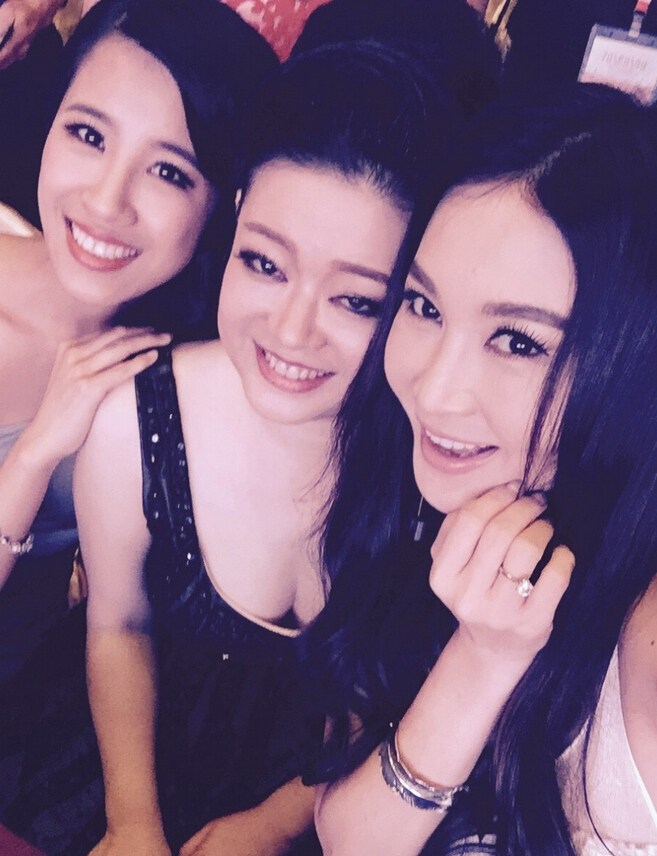 5月19日,50岁温碧霞晒出一组和友人的合照。一向走性感路线的她用头发遮住胸前,而旁边的大胸女却十分抢镜。