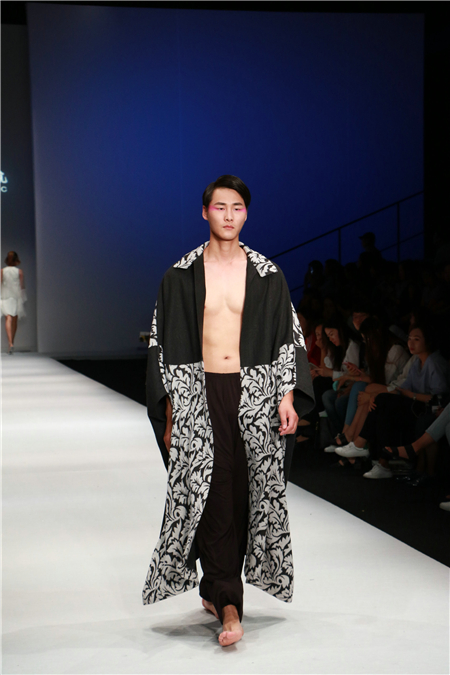 作为国际上数一数二的压轴超模,哪里有秀场哪里就是主场。此次,担任开场利落奔头亮相,眼角两抹粉色妆容轻松驾驭,一款简单黑色阔腿裤登场,使李振的两条大长腿更为修长。短款外套展示时,坚定的眼神霸气占据焦点,结实匀称的身材若隐若现;长款外套就算是已到脚踝处,李振随意洒脱的光脚走在T台,完美诠释了服装的特点。