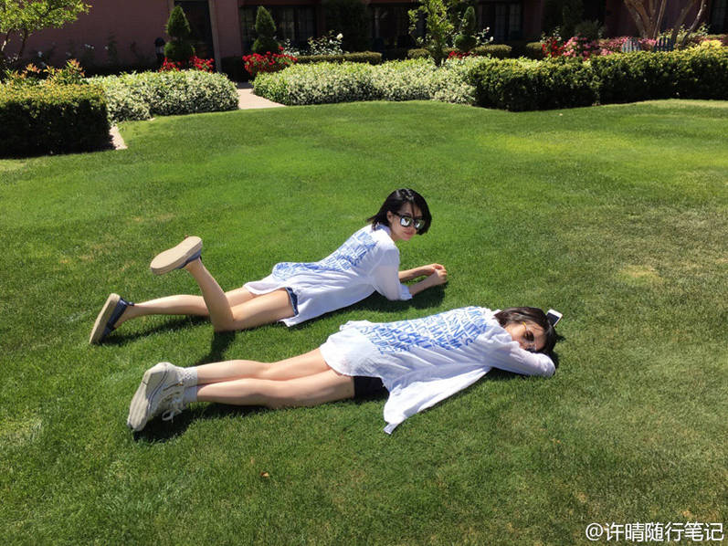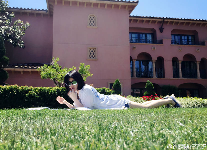 5月24日早上,许晴晒出一组现身学校的照片,并写道:“Back to my schooldays。”画面中,许晴穿着超短热裤,大秀美腿,与闺蜜一起躺着草地上看书、喝咖啡、惬意聊天,少女心满满,完全想象不到许晴已经47岁了,