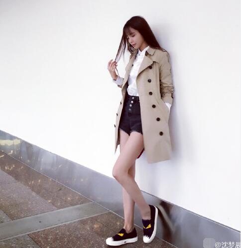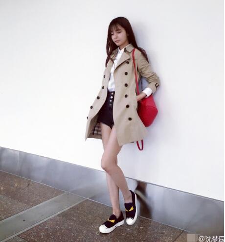 5月24日,沈梦辰在微博上传一组自己的美图,并发文:“下雨天总是有些淡淡的忧桑。”照片中,沈梦辰穿白色衬衫,米黄色外套,一条热裤让她的长腿外露,她时而闭眼靠墙、时而撩发,尽显女人味。