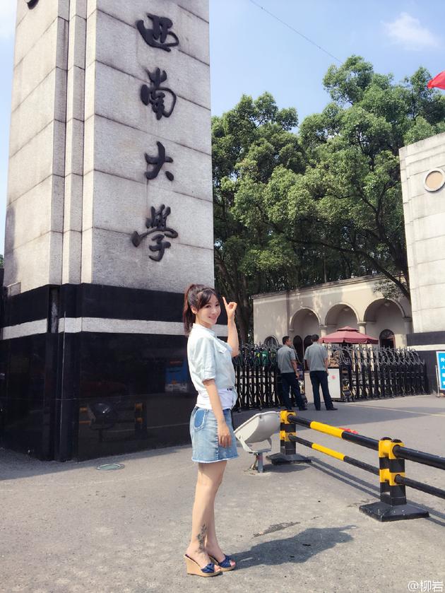 5月24日下午,一向以性感著称的柳岩在微博上晒出了一张在西南大学校门前拍摄的照片,并留言道:“你好,又见。”