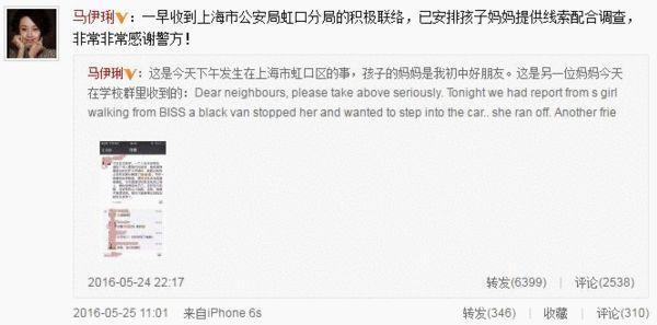 今日,马伊琍又发微博称:“一早收到上海市公安局虹口分局的积极联络,已安排孩子妈妈提供线索配合调查,非常非常感谢警方!”