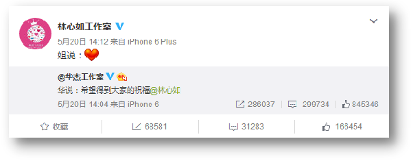 5.20世界表白日霍建华工作室微博高调宣告和林心如的恋情,8分钟后林心如工作室转发微博证实两人恋情!消息一出,瞬间霸占了微博热搜第一名,不仅震撼了两岸三地的娱乐圈,连网友也是操碎了心。这两人当年也是撩过了无数的帅哥美女,想当初杜飞X如萍、尔康X紫薇、景天X白豆腐哪一对不是人人称羡!但是两个人都低调奢华有内涵,郎才女貌配我一脸,网友们也只能纷纷表示祝福了!